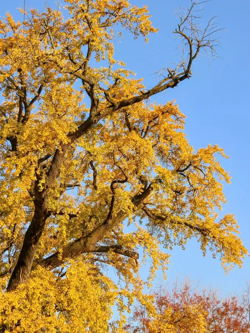 고혜제사(惠济寺)의 은행나무는 현재 옅게 노랗게 물들기 시작했으며, 가지 끝은 초록에서 황금빛으로 변해가며 마치 마지막 힘을 모아 장대한 황금빛 만개를 기다리는 듯합니다. 예년의 경험에 따르면 11월 말에서 12월 중순이 가장 화려한 절정기를 맞이합니다.